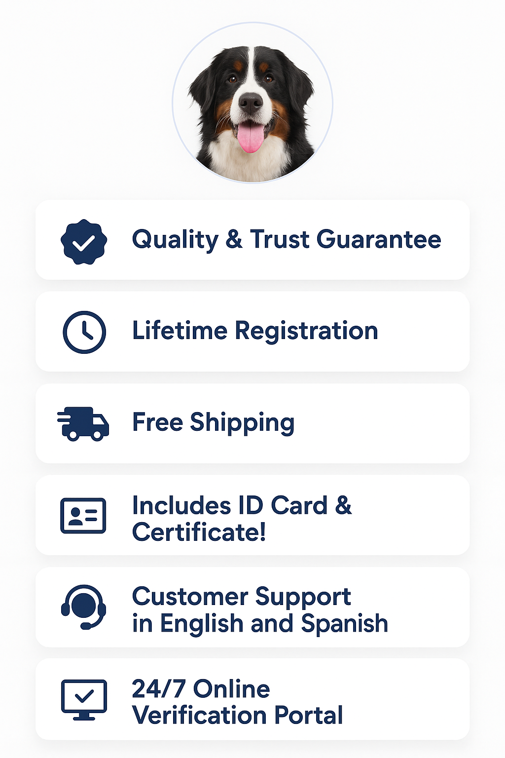 Recibirá su Certificado de Registro de Animal de Servicio o ESA y una identificación con foto por correo y en formato digital (opcional) para descargar para uso inmediato.